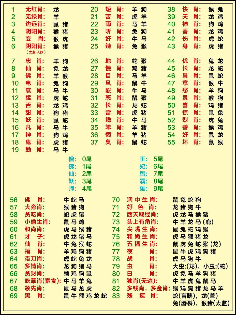 地肖:鼠虎蛇羊鸡狗